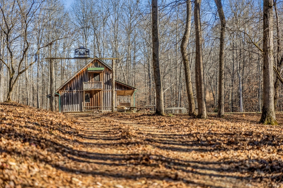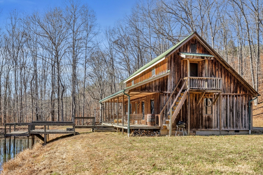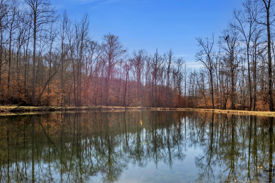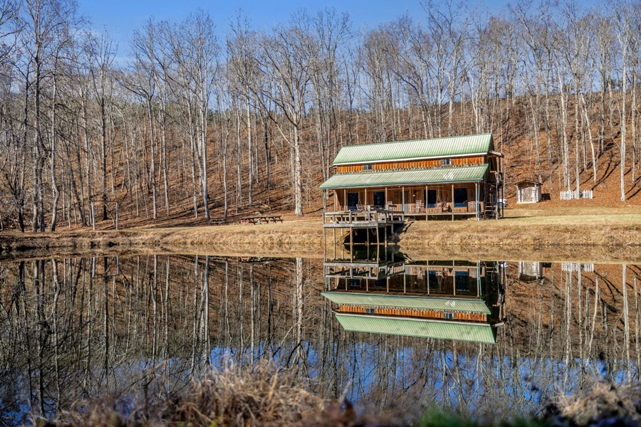 The amount of water on this premier farm is remarkable! The main water feature is a spring-fed lake that measures around 21 acres stocked with largemouth bass and brim, with the largest bass caught weighing 12 pounds! The lake is also a summer home to geese that hatch their young on the 2 small islands. Each cabin has a nice-sized spring-fed pond close by, with the crystal-clear water offering views of the fish. Another smaller pond is located up close to the road and also has fish in it. Numerous spring-fed streams flow throughout the valleys, with some of the springs originating on the property.